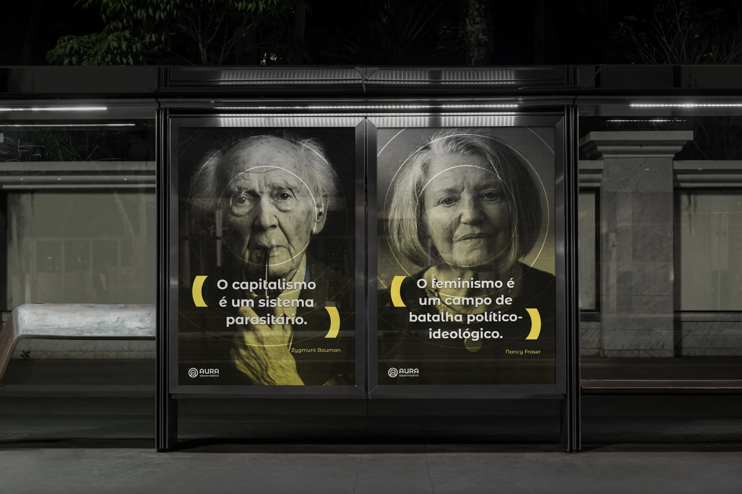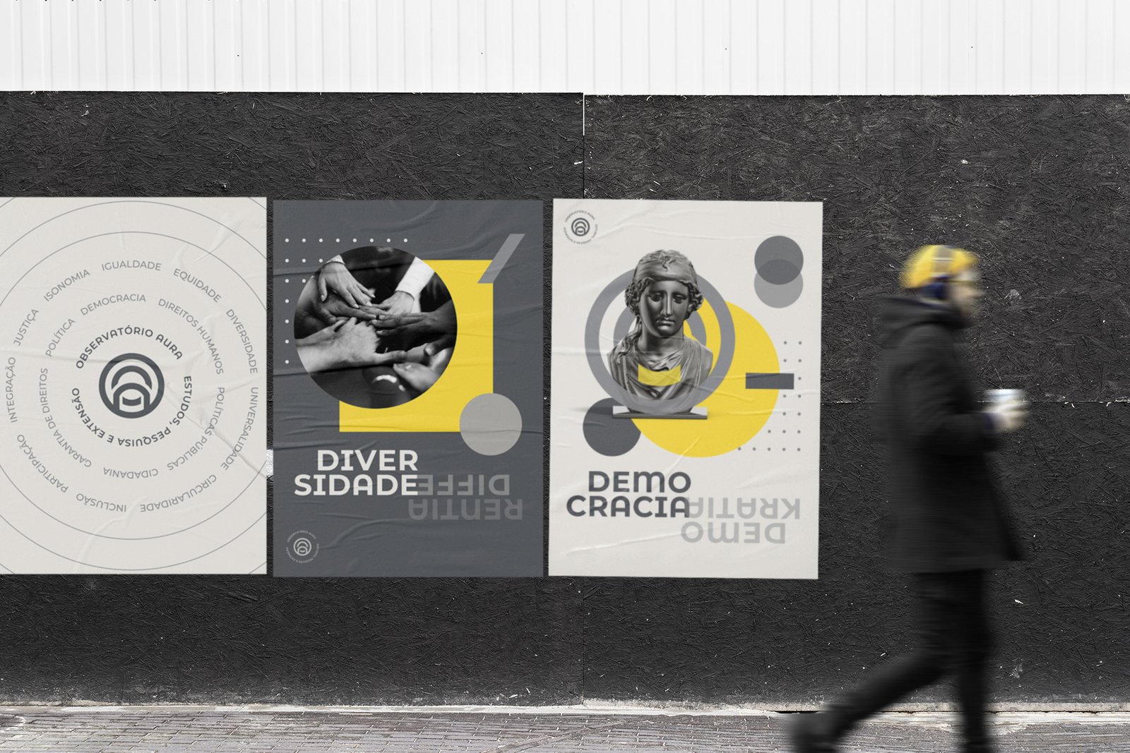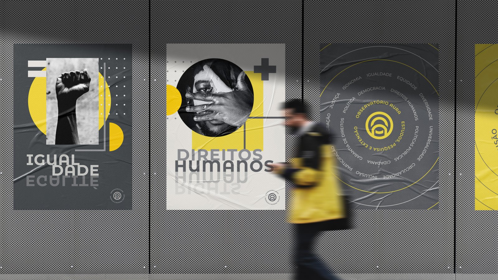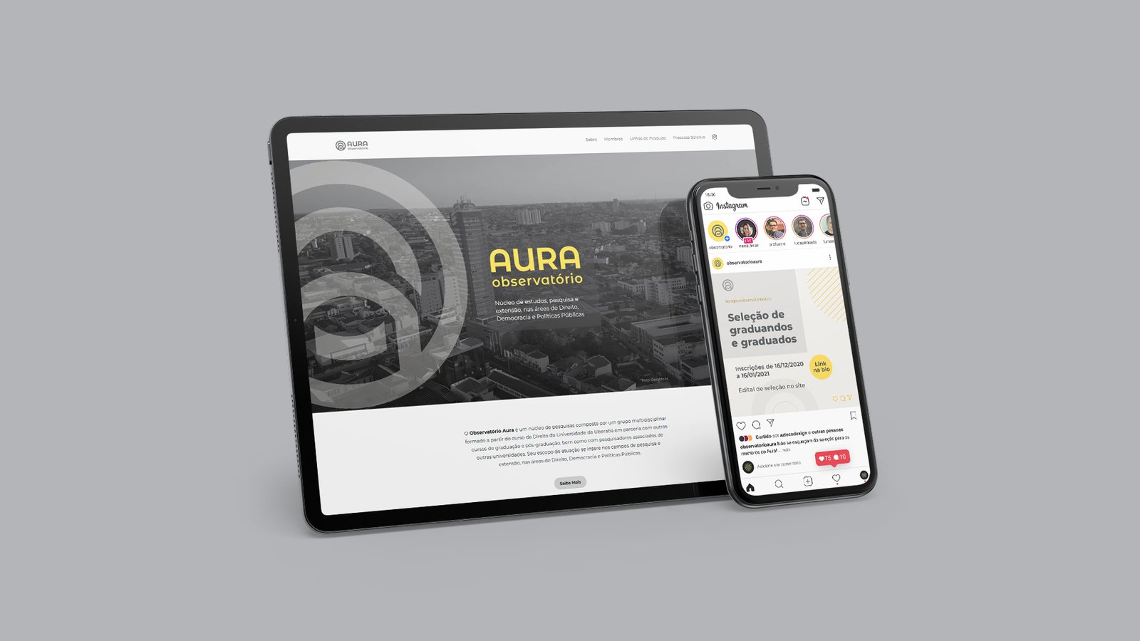 Para apoiar a implantação da marca, foram entregues o manual de identidade visual, papelaria institucional e diretrizes para uso em redes sociais. A marca deve se comunicar de forma clara, ética e acessível, fortalecendo a credibilidade científica e estimulando a participação social. Cada aplicação – da identidade digital a eventos acadêmicos – deve reforçar os valores de justiça, cidadania e colaboração, consolidando o Observatório Aura como um espaço de referência em direito e democracia.