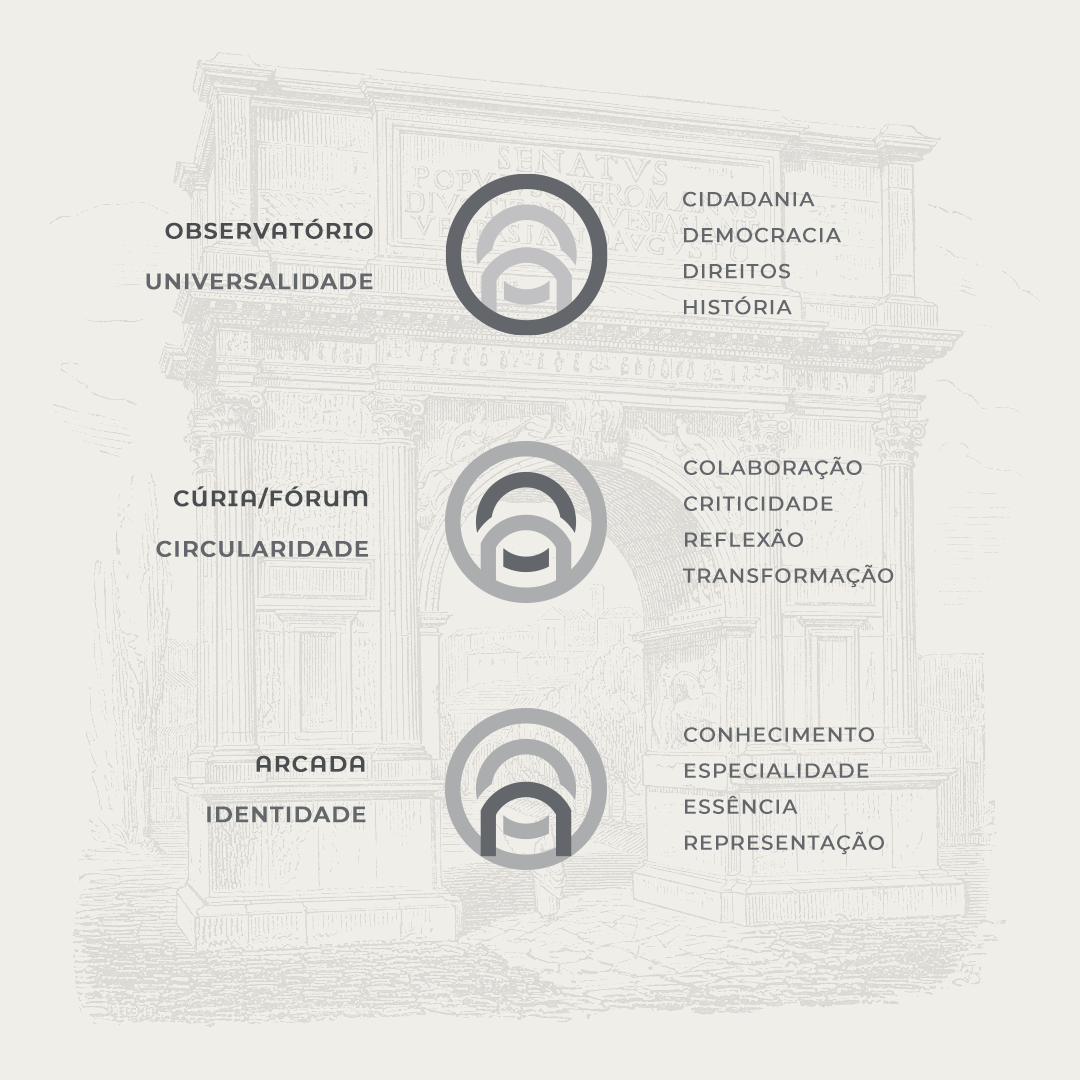 O conceito visual da marca teve por inspiração a República Romana, berço da cidadania ativa e da participação política pública, com sua arquitetura marcada por espaços de encontro e debate. A arquitetura desses templos era marcada por espaços circulares ou semicirculares, um estilo próprio de formas inovadoras de construção, que seguiam princípios de solidez, funcionalidade, proporção, decoro e beleza.
